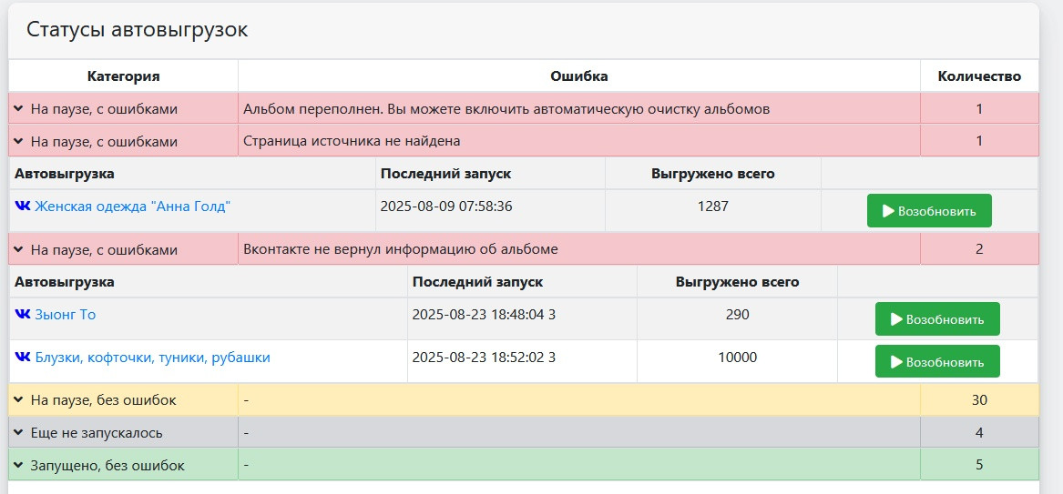 Теперь Вы можете создать огромное количество Автовыгрузок простыми действиями за один раз.
